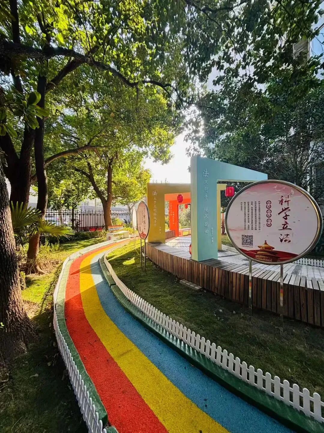 在这个过程中,居民不仅提出构想,更全程参与方案探讨、选材定色,在共建共治中让文明不再是抽象的概念,继而化作可触可感的生活场景。无论是蜿蜒的彩虹步道、围起安全区的白色栅栏还是居民亲手挑选的彩色座椅……如今这里常见孩童嬉戏、邻里闲谈,文明在欢声笑语中落地生根,在日常交融中枝繁叶茂。