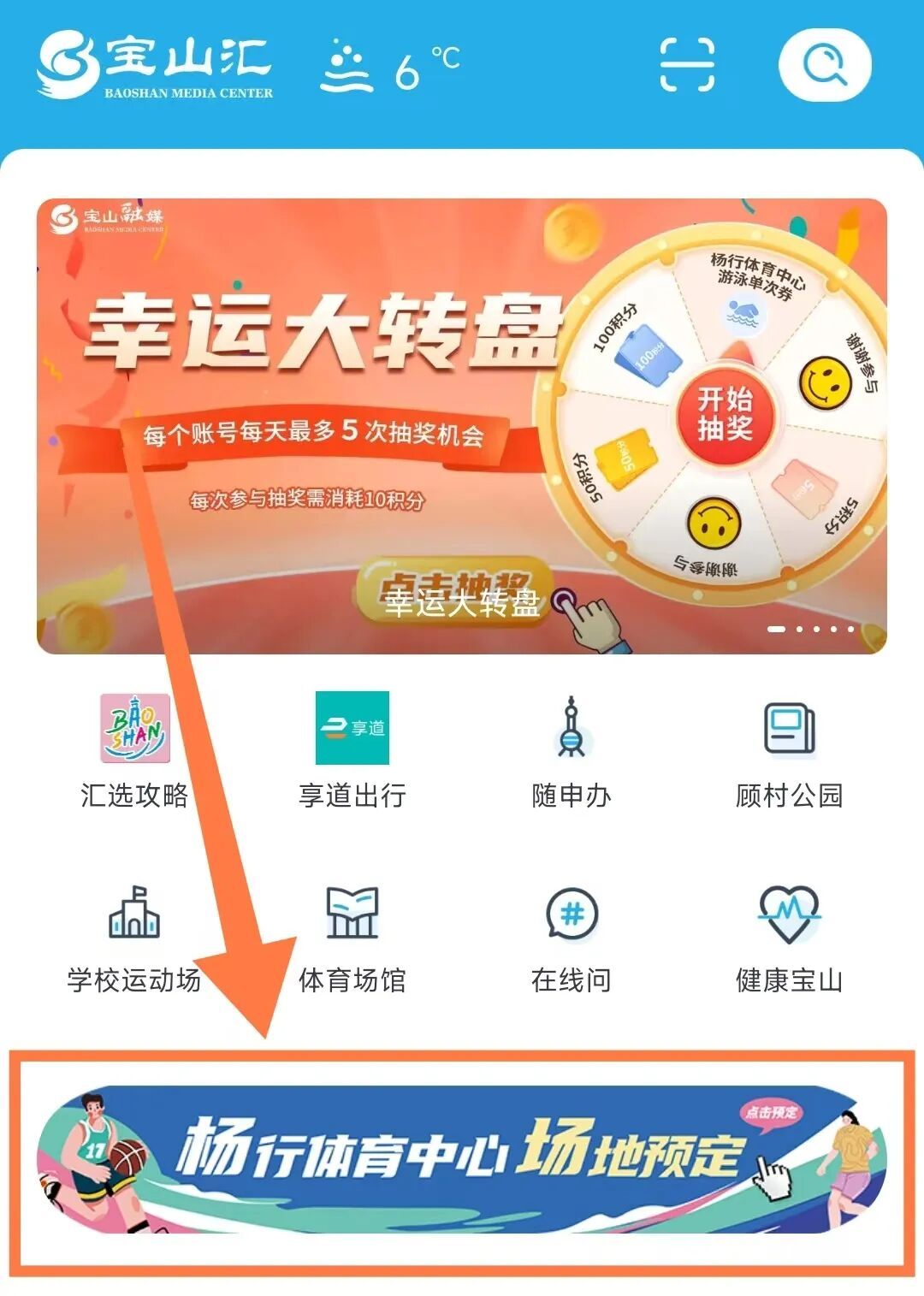 点击首页:杨行体育中心场地预定