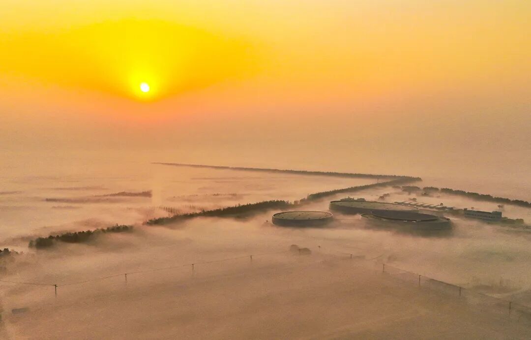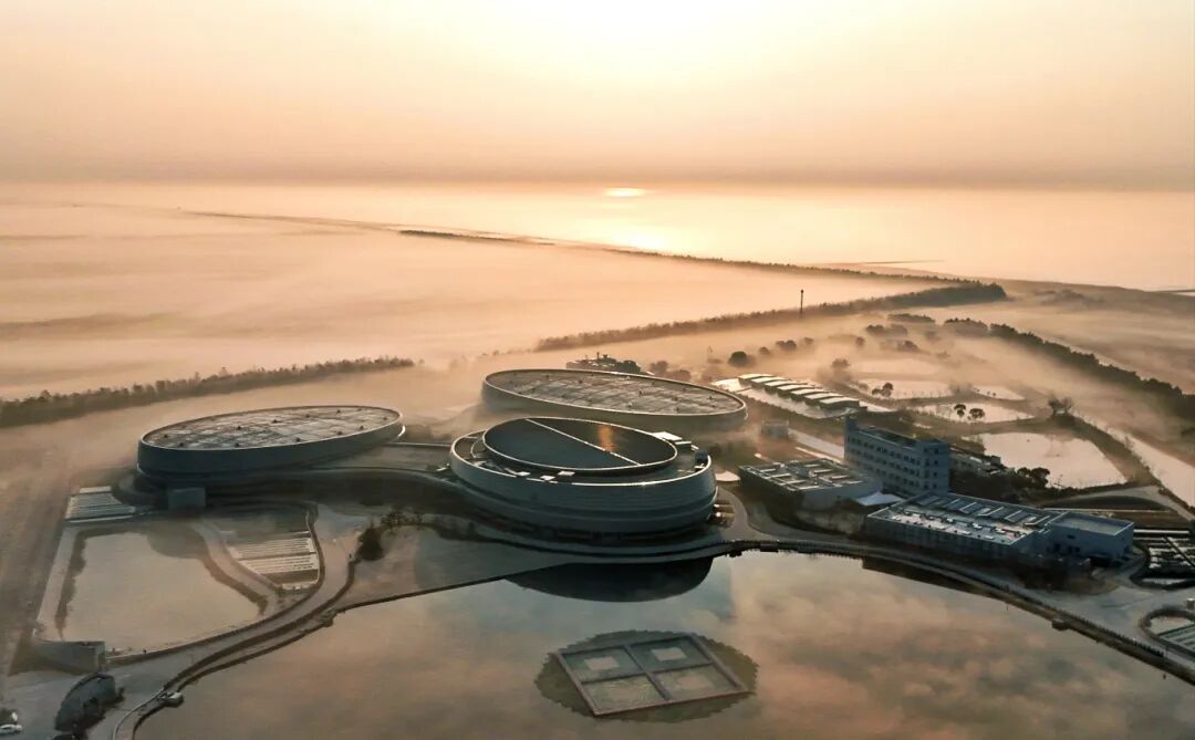 崇明东滩中华鲟保护基地,以独特的建筑和地理位置,每天最早迎接东方冉冉升起的太阳。