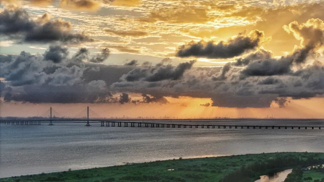 日落下的大桥与览海高尔夫社区