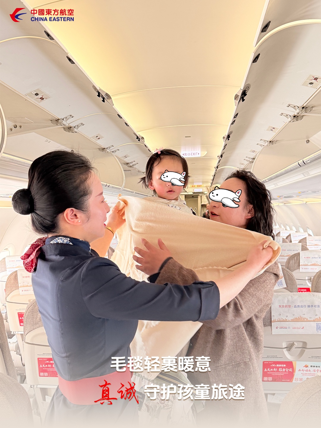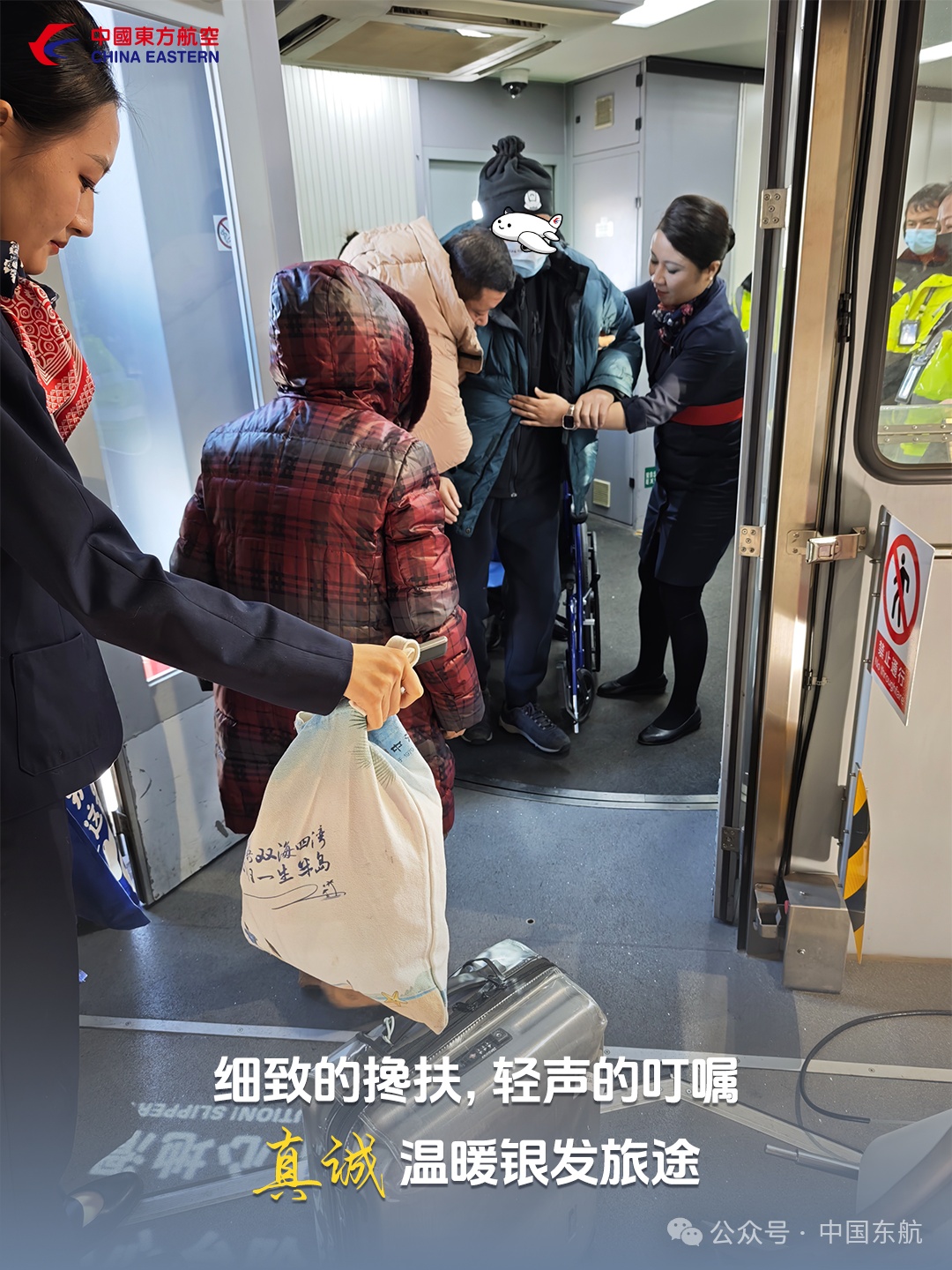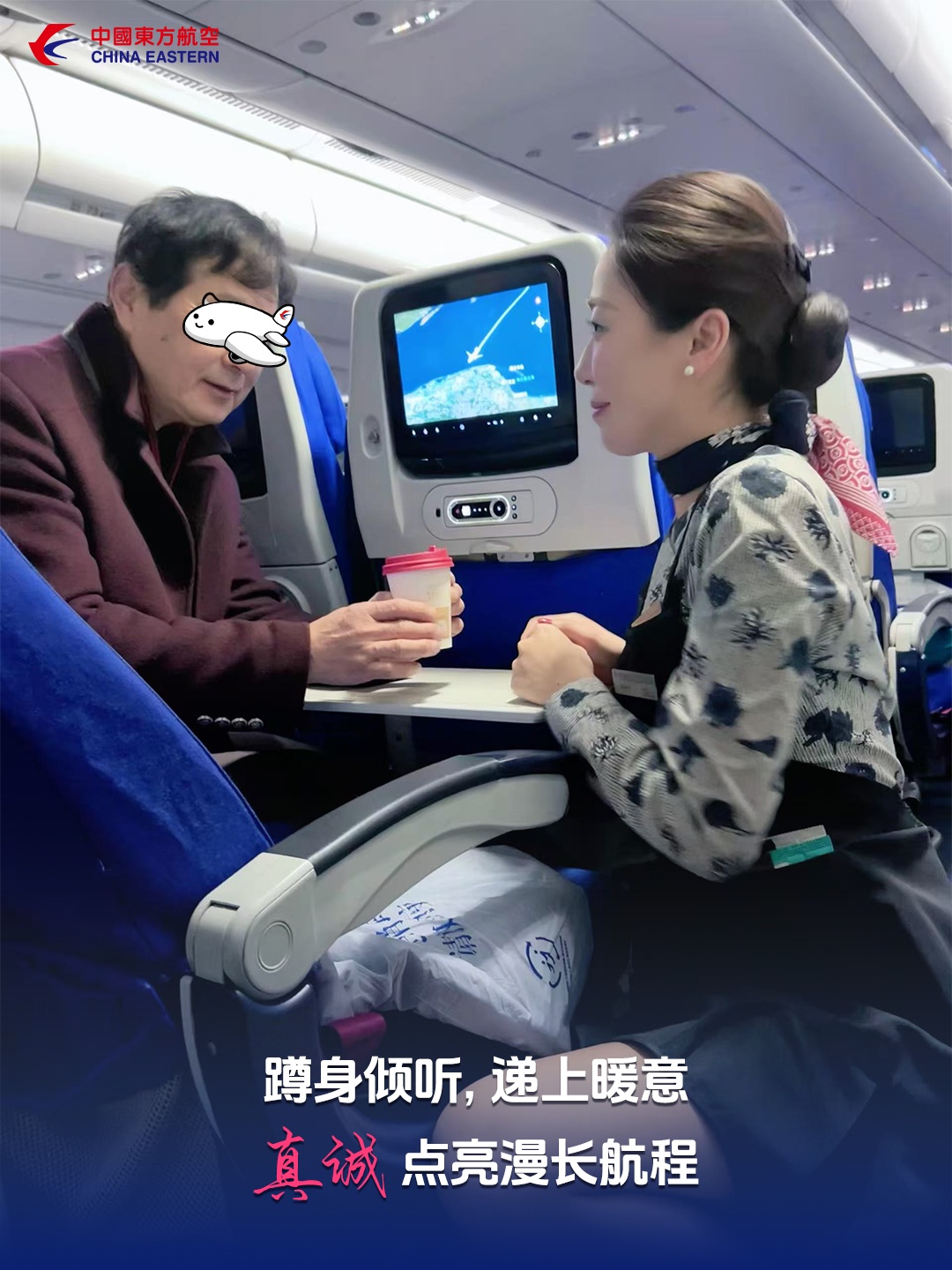 在东航的每一次起落之间,真诚服务从不是空洞的承诺,它藏在为老人稳稳托住的臂弯里,融在给孩童裹紧的毛毯暖意中,也映在与聋哑旅客掌心相握的真诚里,让三万英尺的高空,满是触手可及的温柔。