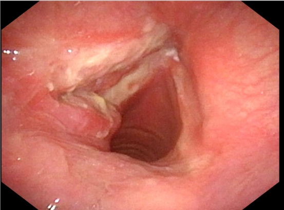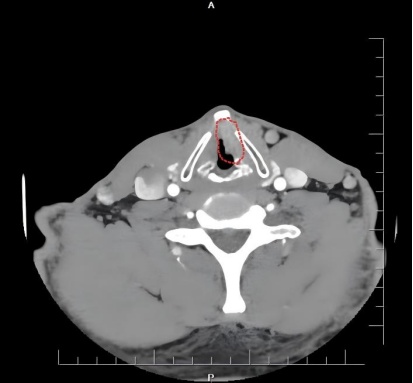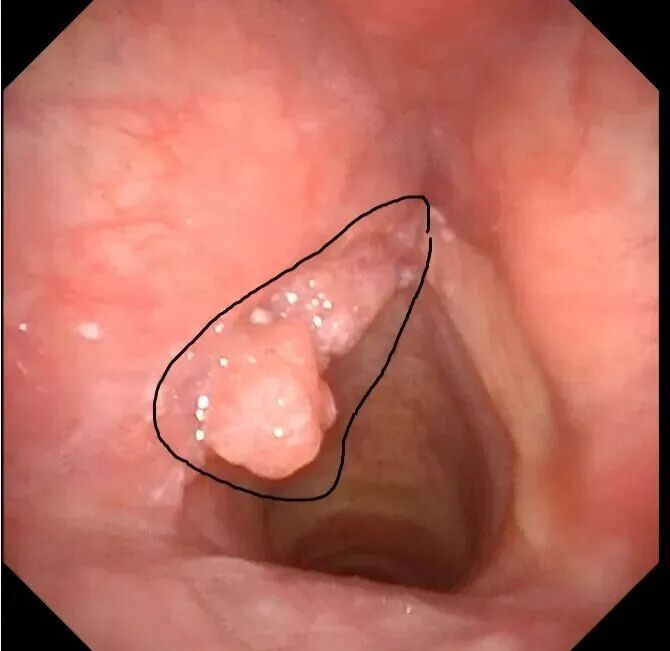 喉镜检查提示:左侧声带异常新生物,形态高度疑似恶性肿瘤。后续病理活检证实为鳞状细胞癌,病变范围较大,累及甲状软骨内膜,属喉恶性肿瘤中晚期。所幸目前未发现明确转移迹象,最终确诊为喉恶性肿瘤(声门型,鳞状细胞癌,T3N0M0,III期)。