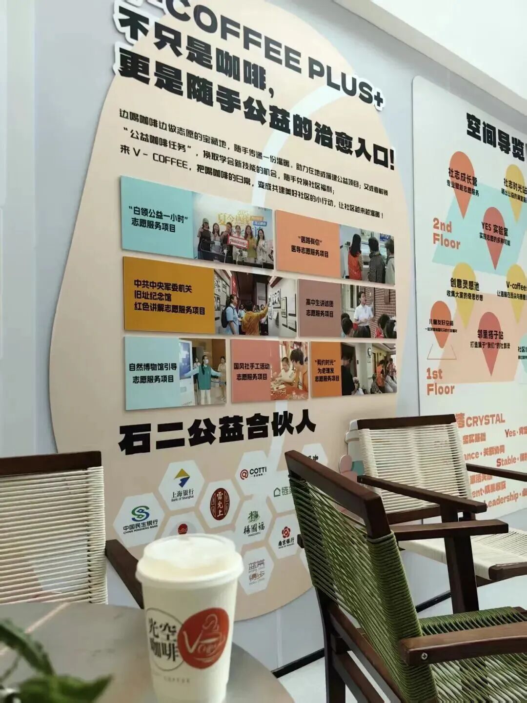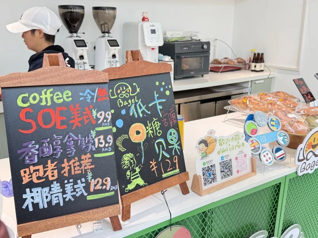 在尝试“商业业态+公益服务”的探索实践后,“水晶宫”里的功能更加创新融合。一楼台面上,咖啡和贝果的价目表旁放着社区公益志愿报名渠道和服务手册,青年跑友从松散的爱好团体升级为有组织、有阵地、有目标的社区青年公益组织。
