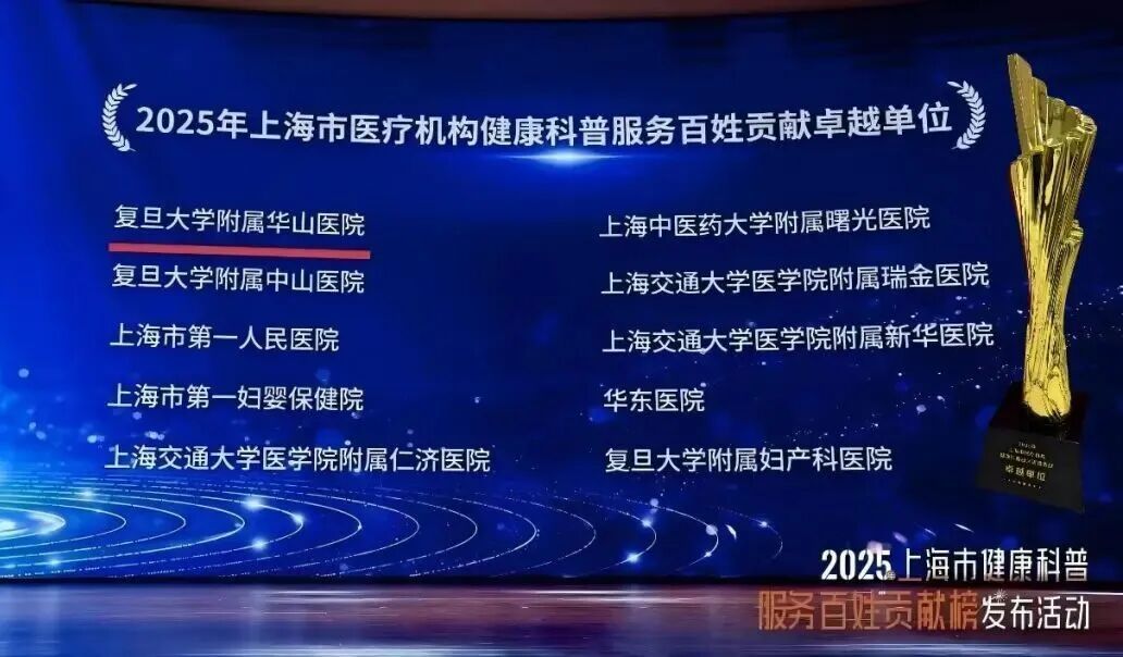 最终,华山人的努力汇聚成一份沉甸甸的认可——荣膺“2025年上海市医疗机构健康科普服务百姓贡献榜”卓越单位首位。