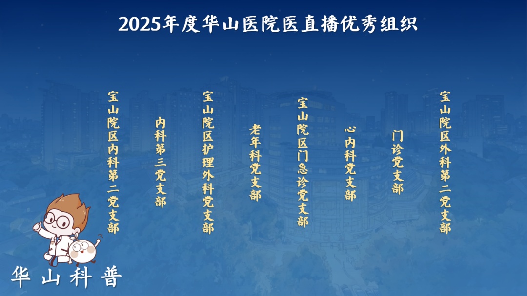 华山医院健康科普工作始终坚持党建引领、锚定家国所需。医院科普体系以制度建设筑牢根基,构建了覆盖全院500余个新媒体账号的三级监管体系,为优质科普的繁荣生长提供了坚实保障。科普内容以创新性表达焕发活力,从“医直播”红色麦克风,到“体重管理年”主题系列活动,从青少年“科普创新实验室”、“医‘申’同行”志愿服务项目,再到痛风科普脱口秀……严肃的医学知识也能有趣有料、有情有义、有用有行。