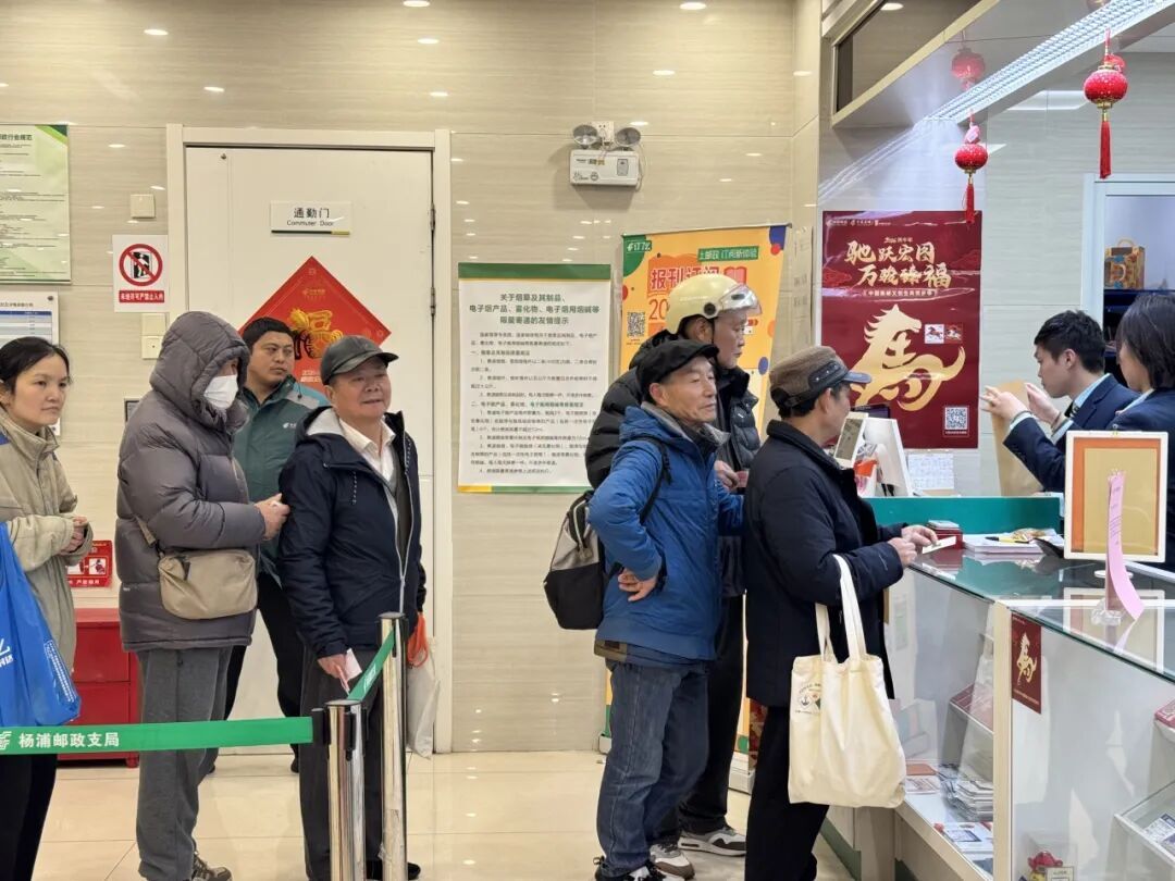 据悉,杨浦邮政支局网点共投放了3224套《丙午年》特种邮票套票,小本票113本。截至上午7:30已全部售罄。未能现场购得的集邮爱好者,仍可关注中国邮政官方网站等线上渠道进行选购。