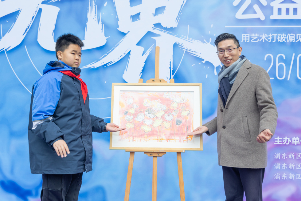 艺术无界,大爱无疆。这场展览不仅是特殊孩子们艺术生命的绽放,更是一封面向全社会发出的诚挚“无界”邀请函。展览开幕式上,举行了两幅作品的爱心义拍。来自社会各界的爱心人士频频举手竞拍,这不仅是爱心的传递,更是对特殊人群实现其社会价值的助力。最终这两幅作品均以高出底价不少的价格成功拍出,拍卖所得将悉数用于支持浦东新区特殊教育事业,让善意继续流动。