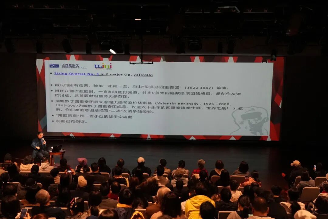 主题讲座上,音乐学家杨燕迪教授深入浅出地剖析《复杂人生的音乐写照——谈肖斯塔科维奇的弦乐四重奏及鲍罗丁四重奏团》,为乐迷补全了肖斯塔科维奇的音乐与历史背景,让每一次聆听都更有厚度。