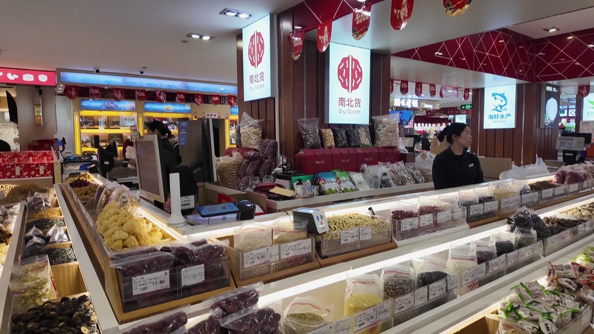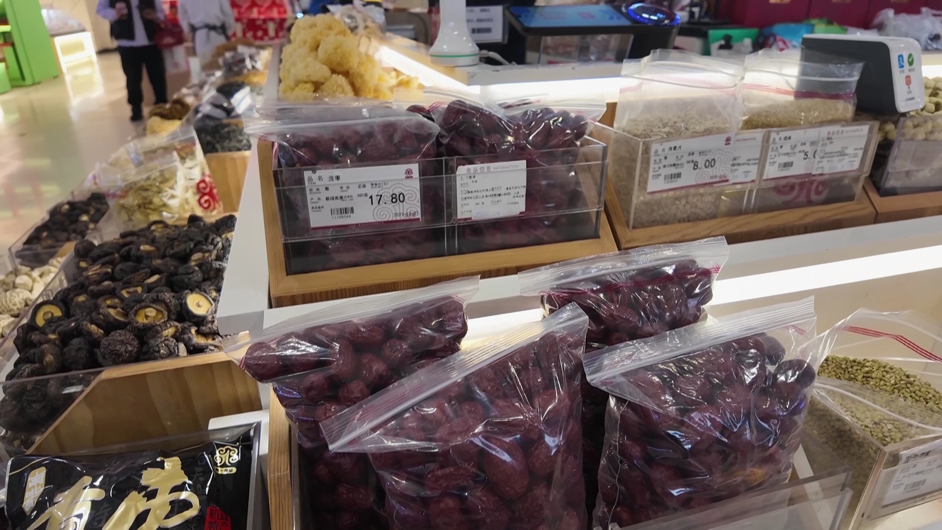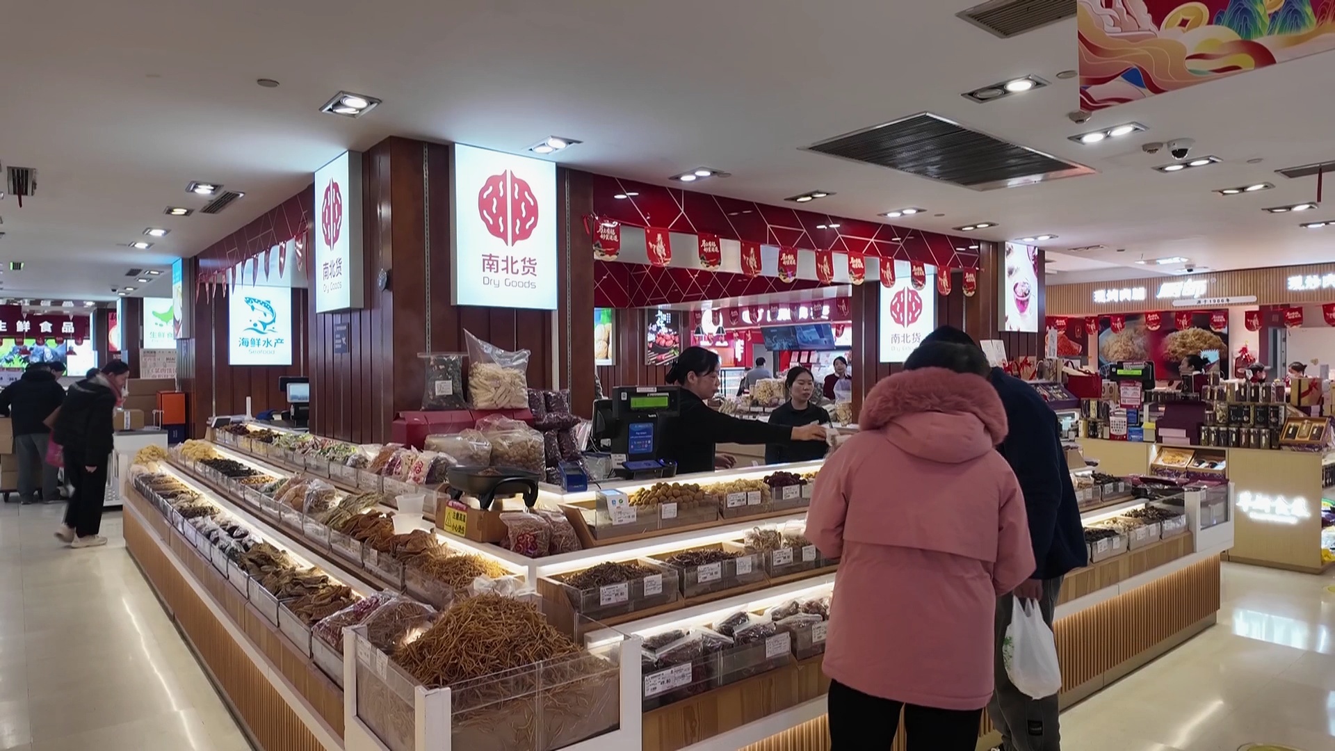今天上午,记者来到南京路步行街的食品一店,南北货柜台前热闹非凡,市民们正精心挑选着各类食材。小寒节气“吃五红”是不少地区的传统习俗,所谓“五红”,指的是红豆、花生、红枣、红糖和枸杞这五种红色的营养滋补食材。将它们搭配在一起煮成的“五红汤”,尤其适合老人和女性朋友,无论是煮粥还是烧汤,都别有一番风味。不少市民特意挑选几种“红色”杂粮,准备为家人烹制暖身美食。