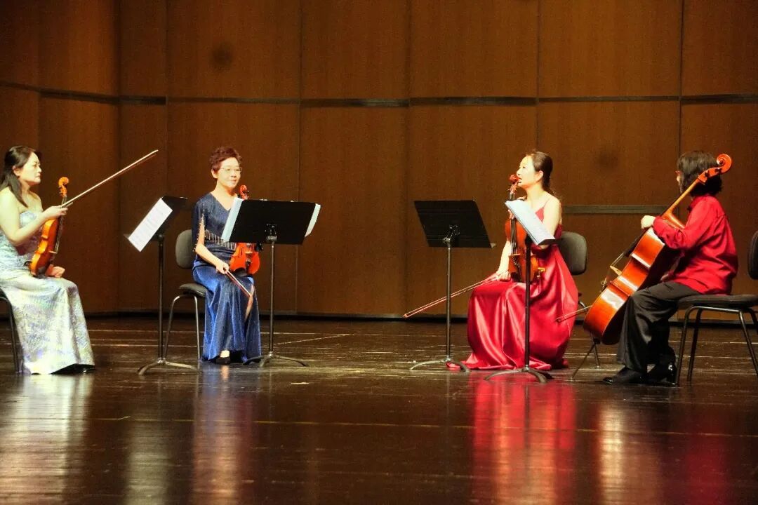 当晚,演出以独特的导赏形式展开。每首作品演奏前,云间交响乐团团长、首席小提琴演奏家曹一民都会先讲解一番,将音乐化为生动可感的画面。从《梁山伯与祝英台》的凄美传说到《海顿四重奏》的精巧对话,从德沃夏克融合灵歌的温暖旋律到《步步高》的岭南风情,他的解说让观众深刻体会到每段音乐的情感内核。演出曲目编排精巧,横跨中西经典。演奏家们以精湛琴艺与默契配合,完美诠释了每部作品的精髓,也展现出弦乐四重奏“无指挥却最需默契”的艺术特质。