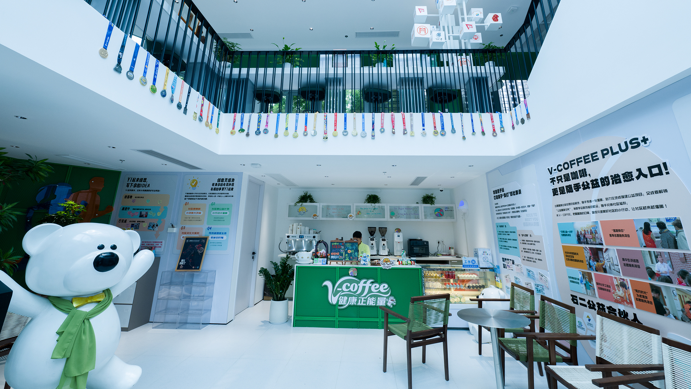 在尝试“商业业态+公益服务”的探索实践后,“水晶宫”里的功能更加创新融合。一楼台面上,咖啡和贝果的价目表旁放着社区公益志愿报名渠道和服务手册,青年跑友从松散的爱好团体升级为有组织、有阵地、有目标的社区青年公益组织。