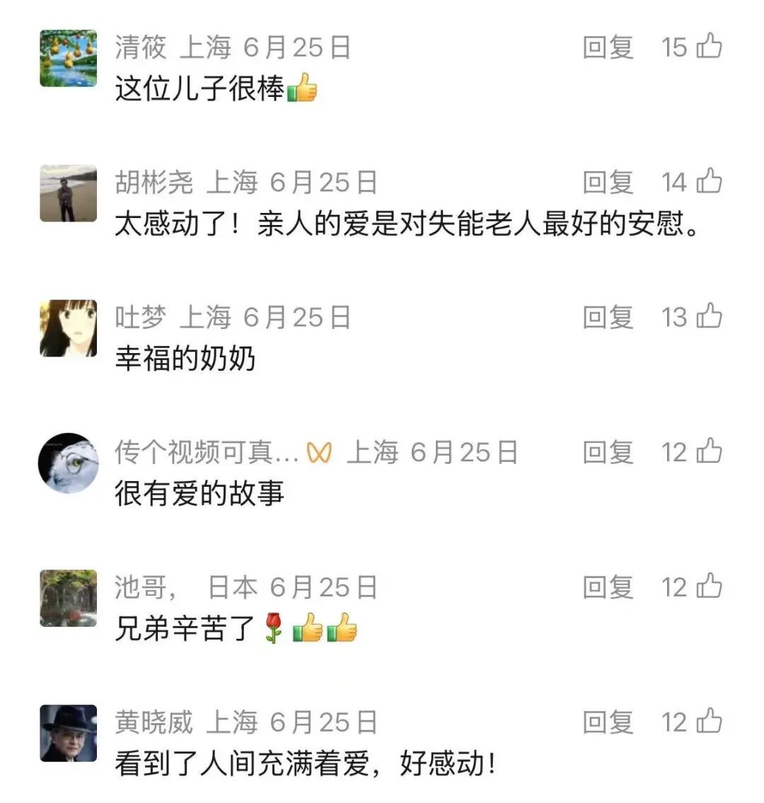 这些视频,也见证了母亲的真实变化。虽然卧床长达近8年,但老太太不仅未生一丝褥疮,甚至更为容光焕发。如果说,快乐是一座守护母亲的堡垒,抵御着病痛与衰老的冲击,那么这座堡垒的基石则是日复一日、事无巨细的悉心照料。