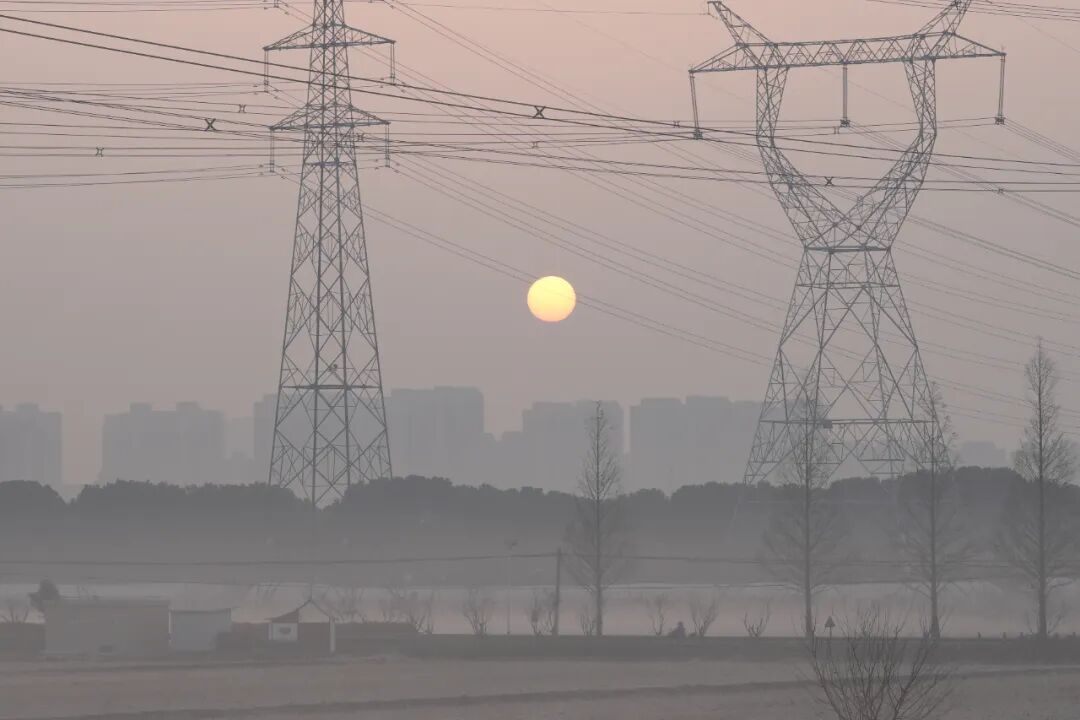 晨雾蒙蒙中,朝阳的暖光逐渐从雾中透出,构成一幅冬晨独有的静谧图景。