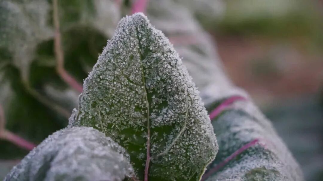 走入田间,用手指轻搓菜叶,霜花随即抹下。在户外停放了一夜的车辆也铺上了一层霜毯,让人真切地感受到冬日的寒意。