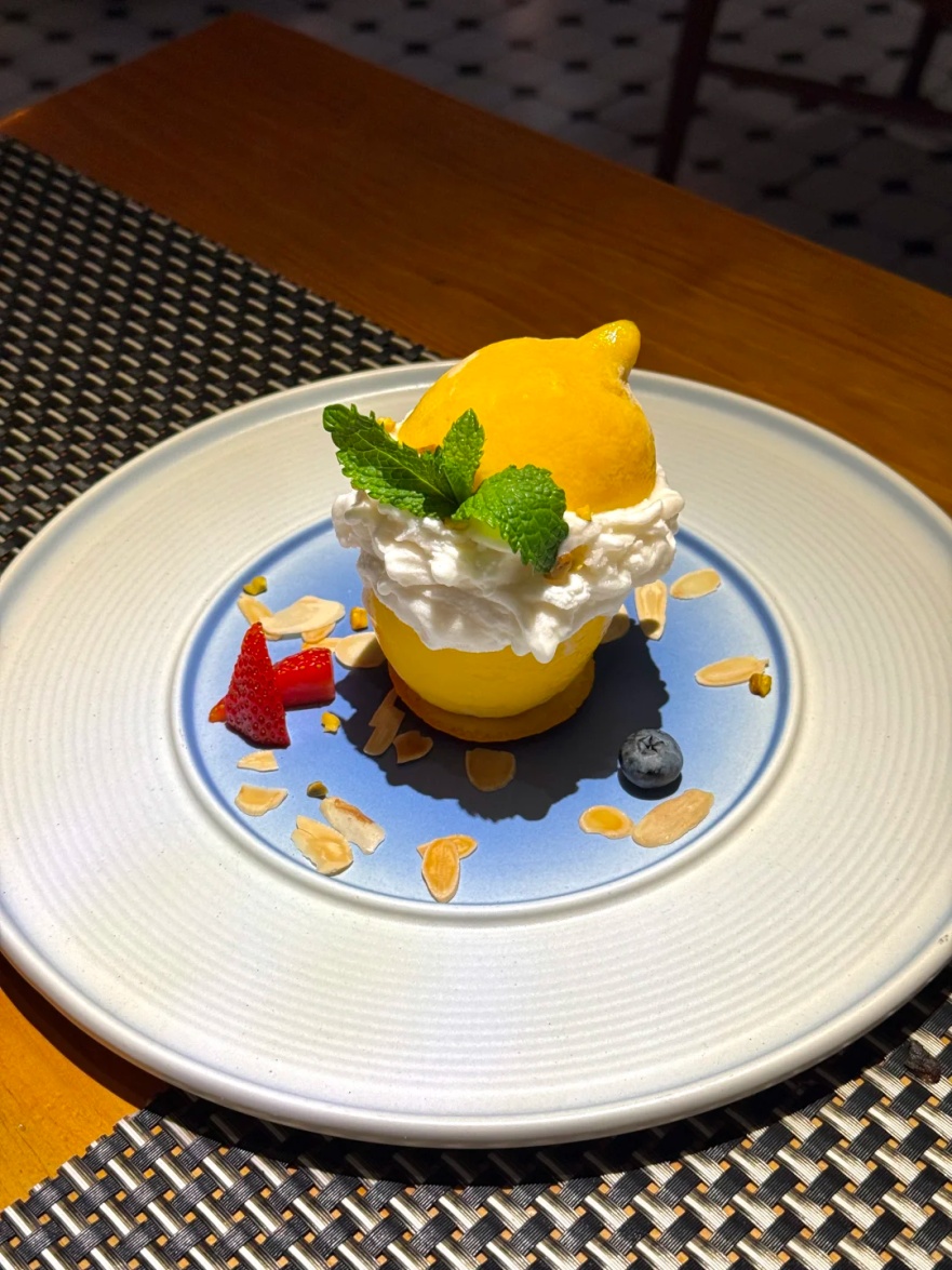 一整颗柠檬里装满冰淇淋,造型可爱又出片,用餐完毕后吃上一口清新解腻。
