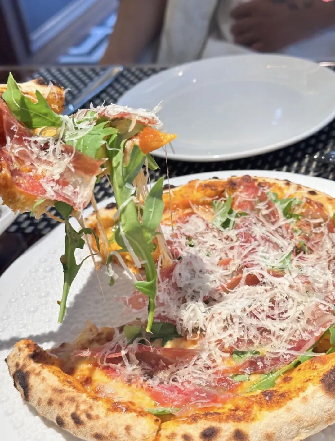 手工薄底脆而不僵,咸鲜的火腿与烤融的芝士搭配有着奇妙的平衡。