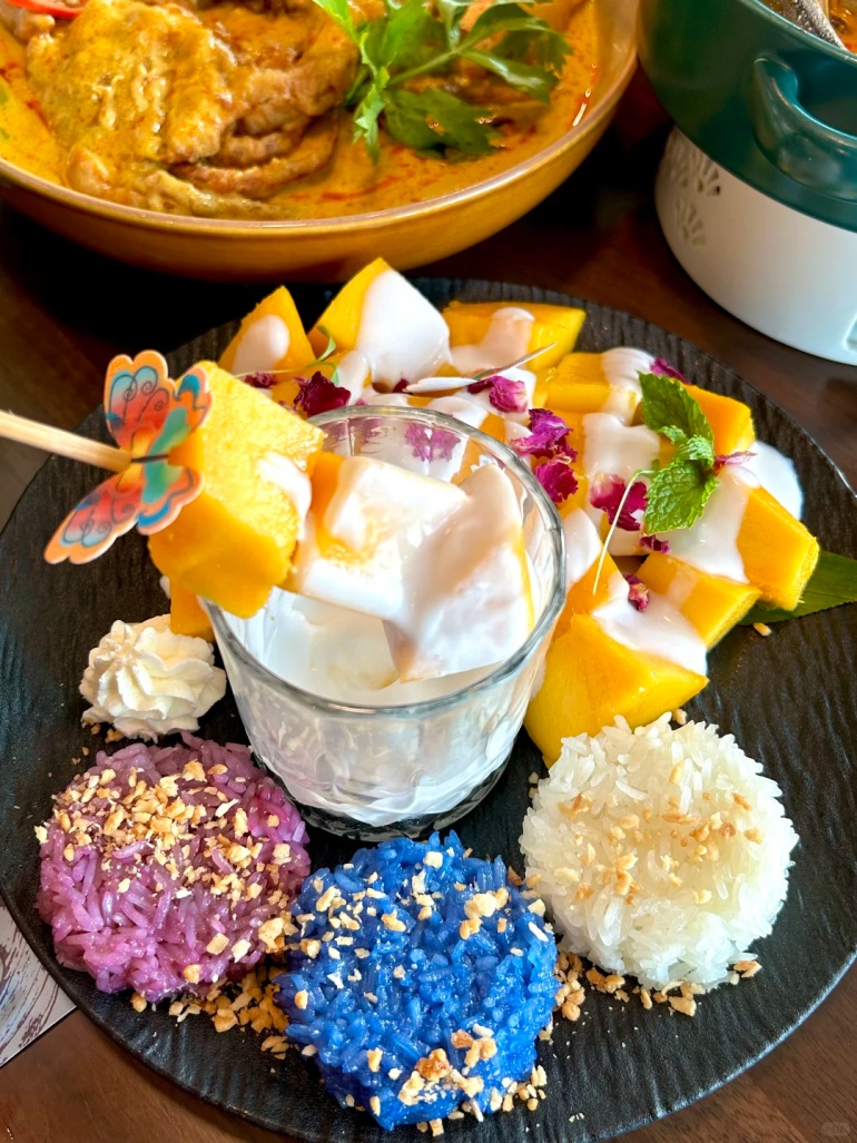 芒果新鲜到能掐出水,甜度刚好不齁,椰浆浓郁又丝滑,糯米饭、芒果、椰浆一起炫,口感层次直接爆炸,颜值还超高~