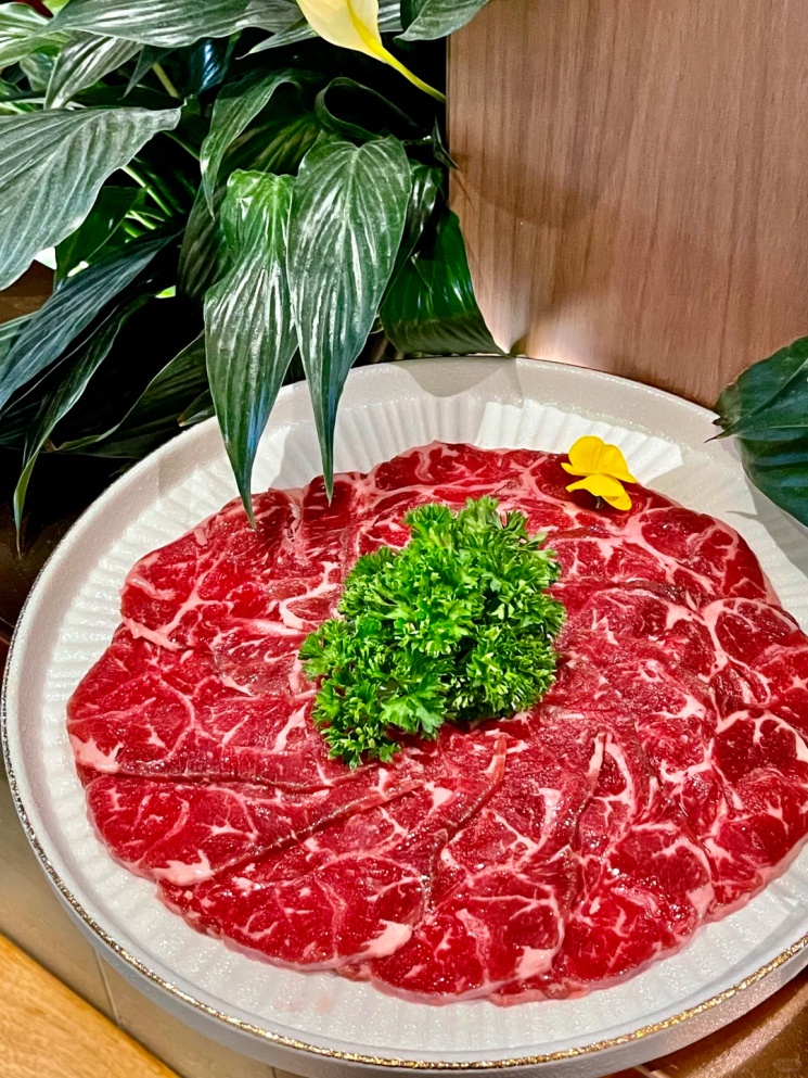选用澳洲红凤凰和牛,12小时全空运冷链直抵上海,肉质粉嫩,脂肪分布像大理石纹路一样清晰。烤至七分熟,入口即化。