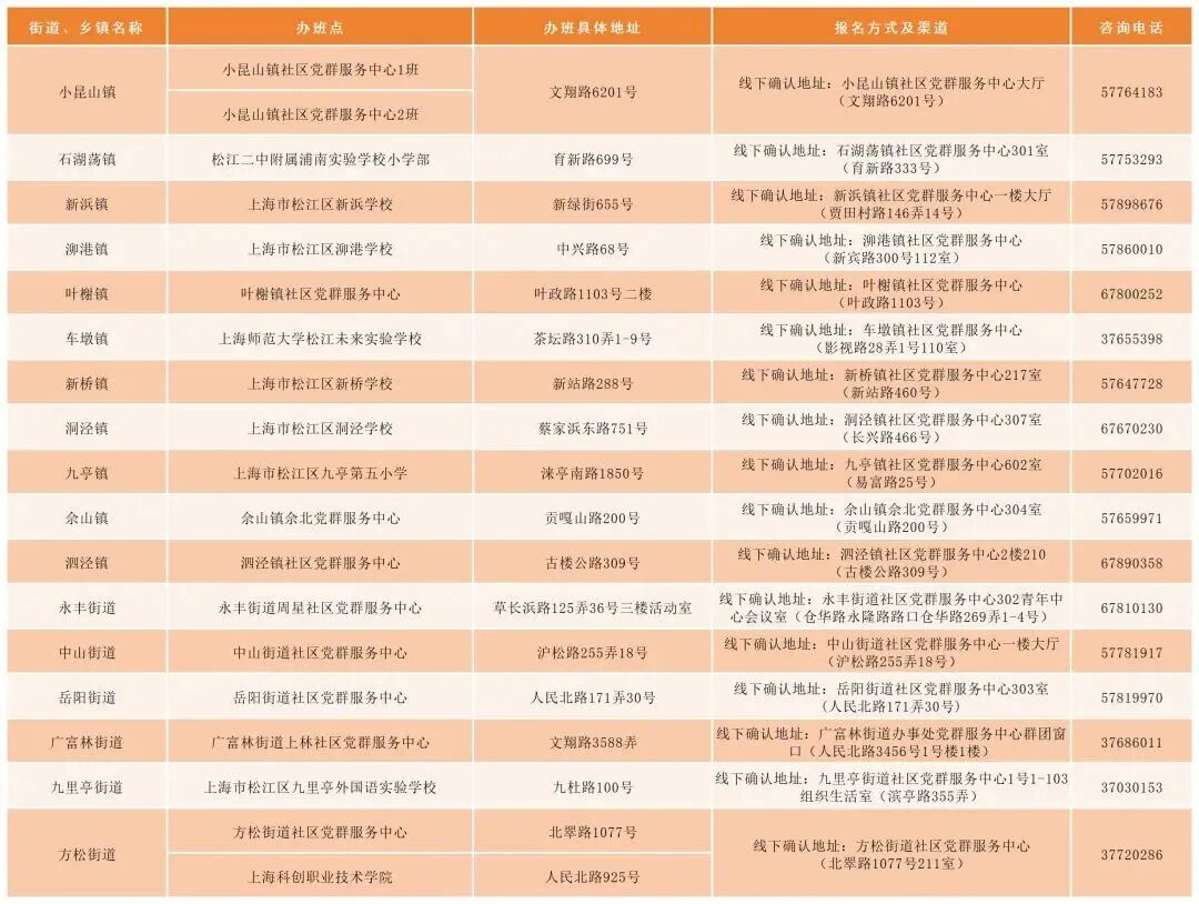 线上报名成功后,线下确认地址详见表格。