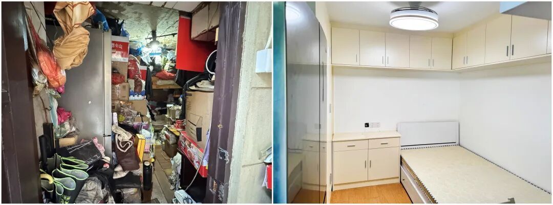 “在垃圾清理期间,感谢街道、居委协调临时堆放点与运输动线,我们在设计改建方案时将重点强化储物功能,青少年社工也会帮助家庭形成良好的收纳习惯。”针对某户家庭长期内外堆物造成的安全隐患,通过与被改造家庭、街道、居委、施工班组多次召开现场沟通会、施工协调会,既有效推动垃圾清运和消防隐患整治,也让残疾低保家庭拥有了爷孙共同居住的环境条件。