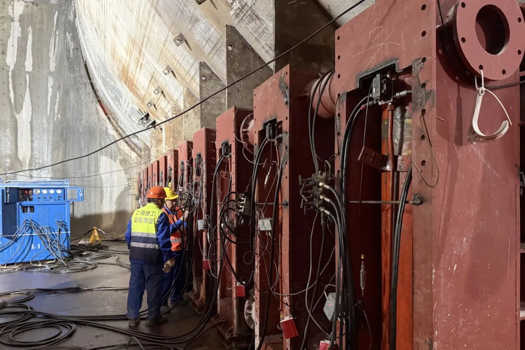 在历经13天连续奋战后,盾构机车架从接收井整体平稳拖回始发井,后续再分体拆运。这一创新方案大幅缩短了施工工期,为后续盾构区间内部结构施工赢得了宝贵时间,积累了超大直径盾构机施工组织经验,提升了复杂环境下的施工工艺。