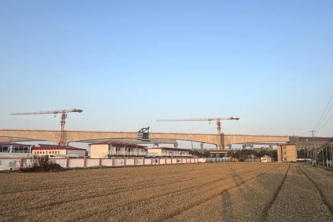 跨两港大道右线158米连续梁顺利合龙