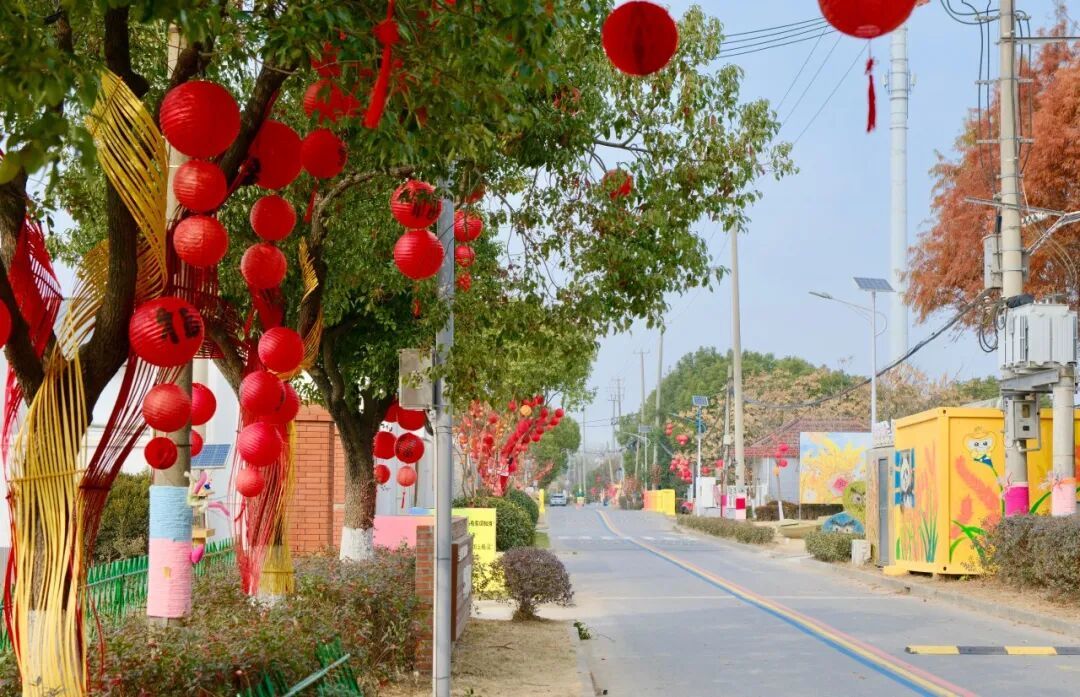 沿蕰杨路、方杨路漫步,道路两侧的绿植已挂上小桔灯与红灯笼。暖光莹莹,红火喜庆,为冬日的乡村道路铺就了一条温馨而充满节日气息的迎宾道。