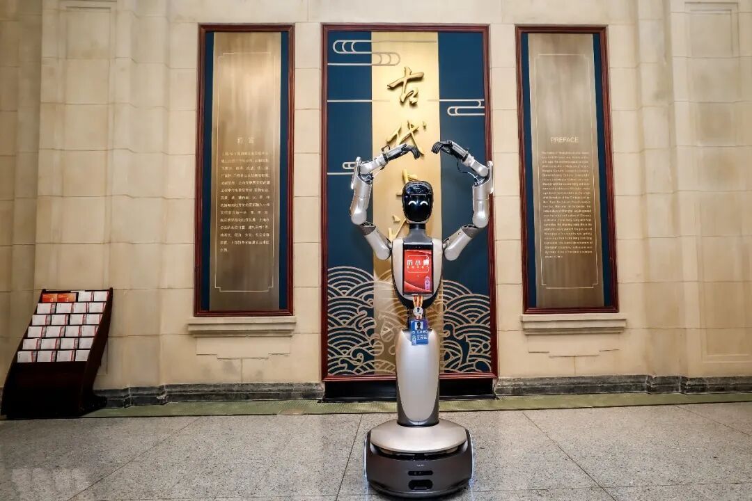 全新亮相的机器人更让现场参观者眼前一亮。具身智能机器人导览不只是“换一台更聪明的播放器”,而是把讲解从单一的讲解升级为更“聪明”的智慧服务。接入城市生活智能体“沪小游”后,机器人将不再局限于固定讲稿或单向播报,而是围绕观众的语音提问做即时回应,让导览从“你听我讲”跃迁为“你问我答”。
