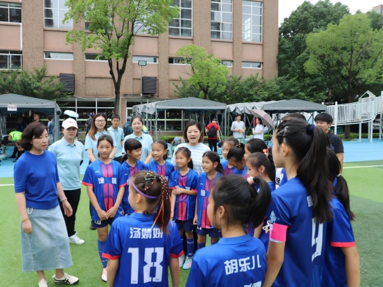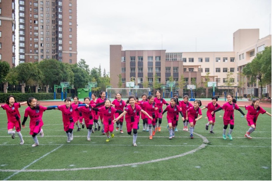 值得一提的是,作为全国校园足球特色学校,徐汇实验小学构建了层次分明的足球课程:低年级以趣味足球游戏启蒙兴趣,中高年级开展模拟实战的战术训练,教师还将足球教学的“学练赛评”贯穿融入到每学期的每一节课堂教学中,让足球学习更具结构化。每天午后,绿茵场上总有“小乐乐”们身着球衣奔跑追逐的身影,汗水里浸透的衣衫上,勾勒出“乐动自强”的成长轮廓。