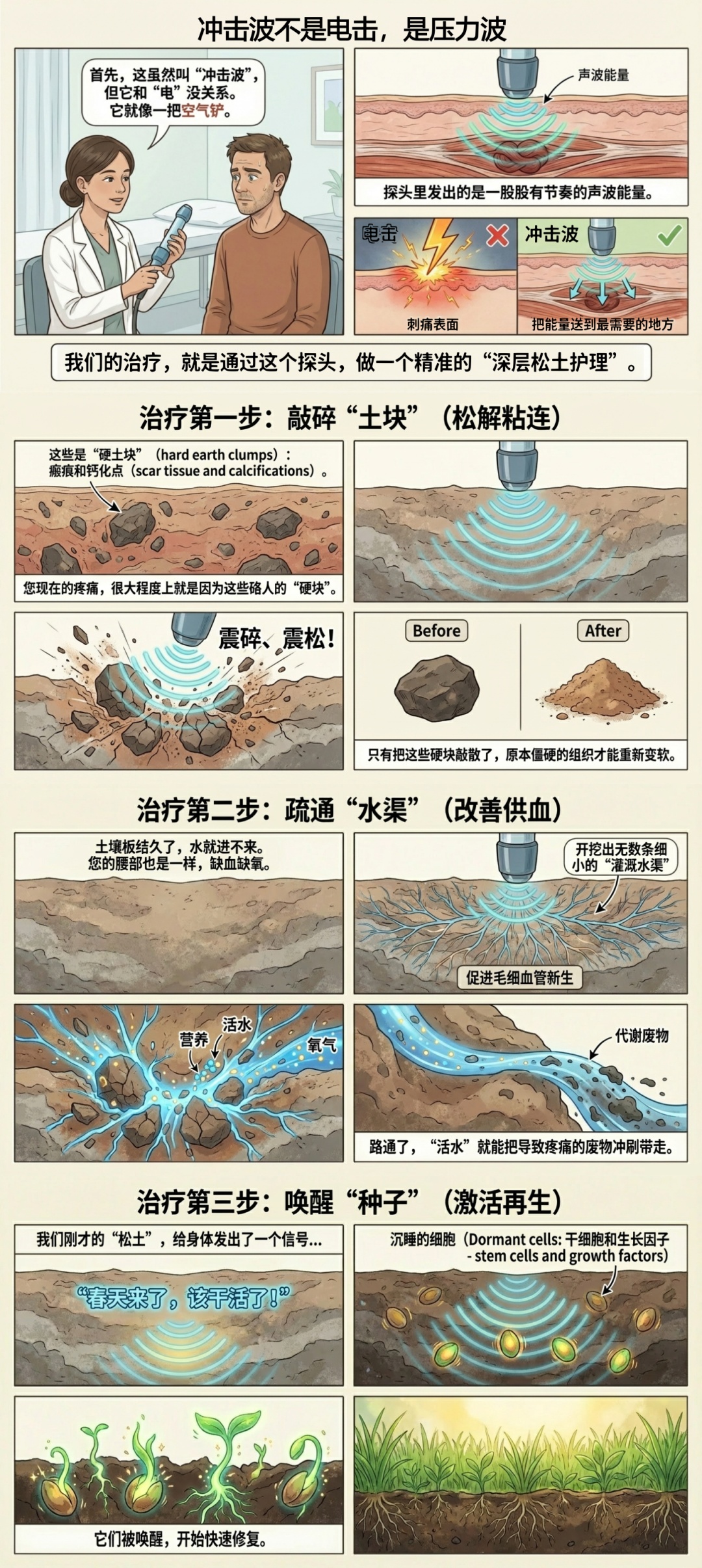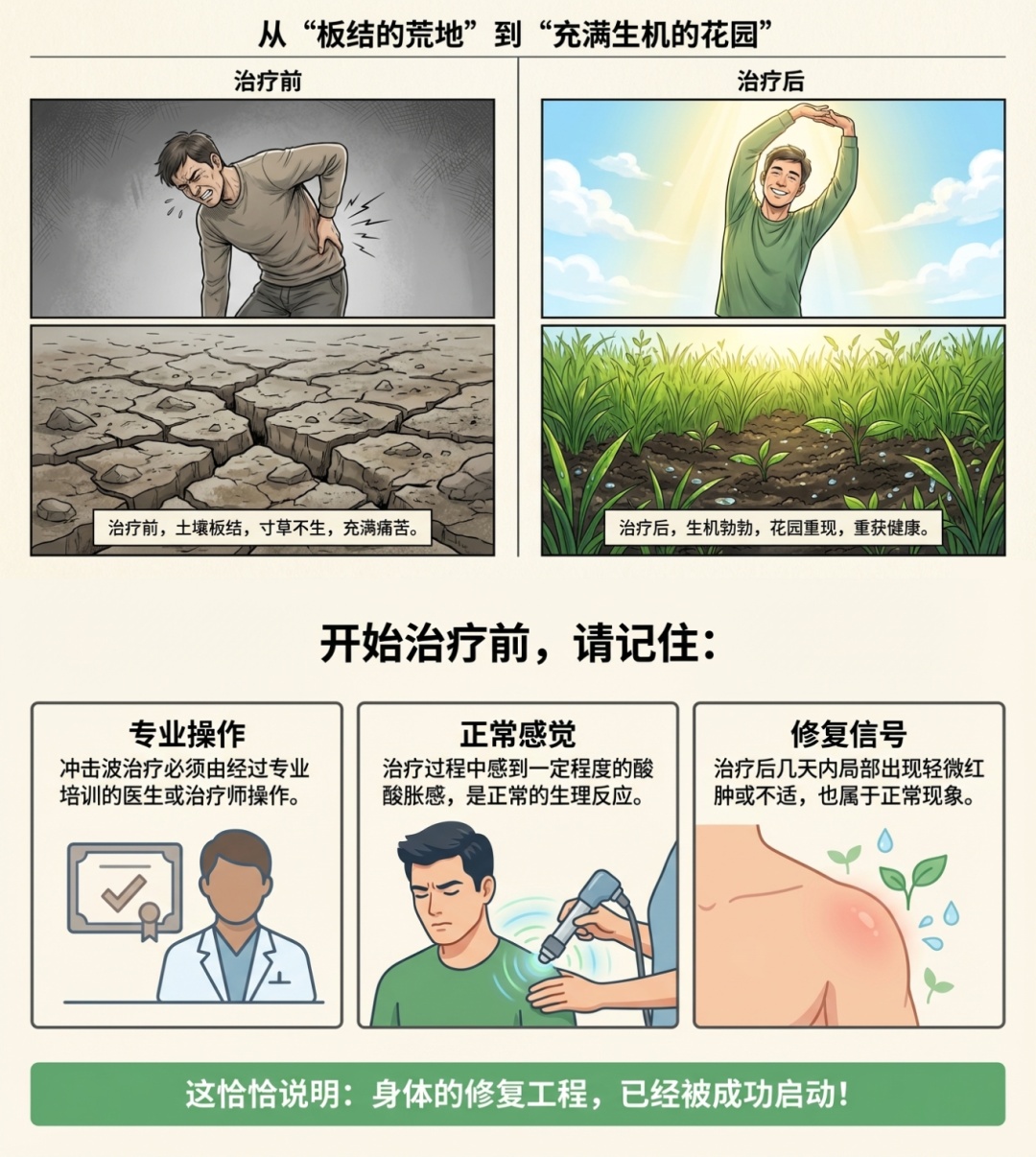 所以,您在治疗时感受到的那种“酸胀感”和“敲击感”,并不是机器在伤害您,那是“板结的土壤”正在被一层层松开的感觉。