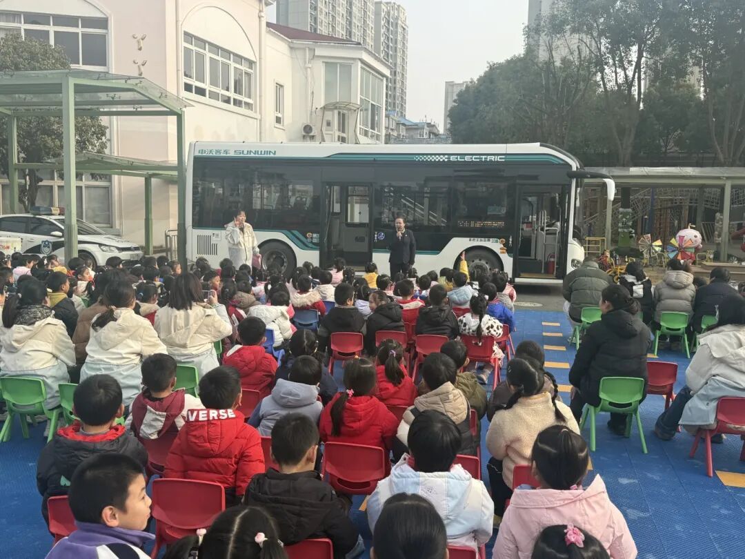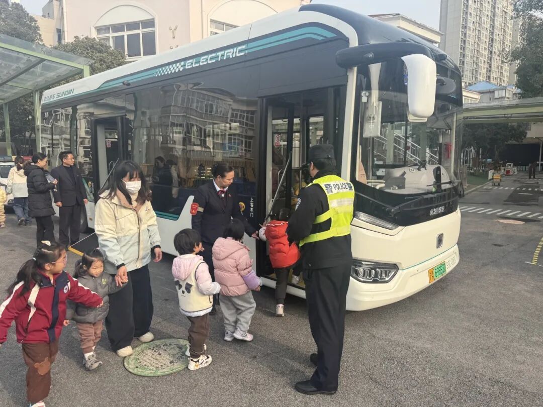 近日,巴士五公司一辆宝山15路公交车缓缓驶入杨行中心幼儿园,携手宝山交警机动大队,共同举办了一场别开生面的“安全与‘童’行,公交进校园”沉浸式交通安全体验活动。活动现场,来自宝山30路的驾驶员陈芳和警官一起,与260余名小朋友展开互动交流,向小朋友们普及安全乘车知识,培养从小树立交通安全意识,养成文明乘车习惯。