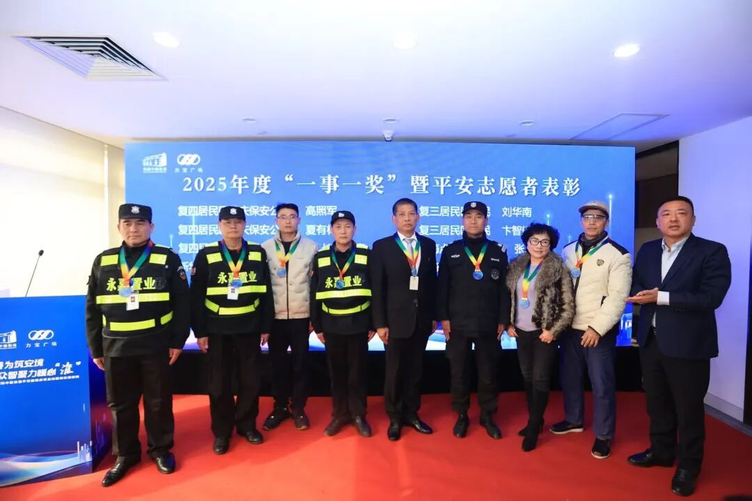 会议表彰了2025年度“一事一奖”平安志愿者。这些来自居民、保安、保洁等岗位的平凡英雄,在过去一年中凭借敏锐的观察和勇敢的担当,在处置火情、消除治安隐患等方面做出了突出贡献。街道共计表彰20项40人次,发放奖金28000元。8名优秀志愿者代表现场获颁“平安微光”奖章。会议同时表彰了SOHO复兴广场、力宝广场、新天地时尚、翠湖嘉苑等一批在平安建设中发挥示范引领作用的先进集体。