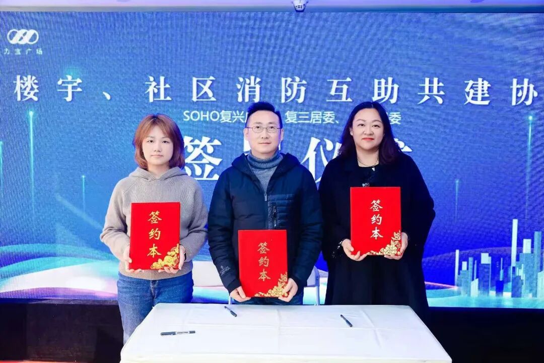 会上举行了楼宇、社区消防互助共建协议签署仪式。此举旨在深化辖区“消防救援站—街道微型消防站—楼宇物业消防点”三级火灾防控体系,构建联防联勤联控联训机制,致力于实现“1分钟响应、3分钟到场、5分钟协同”的应急目标,全面提升消防安全整体能力。SOHO复兴广场、中环大厦等多个楼宇与相邻居委会代表现场签约。