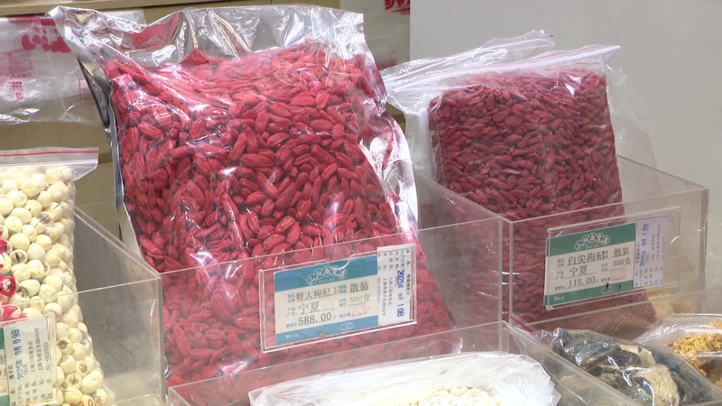 今年三阳新引进的产自宁夏中宁县的贡品枸杞格外受到消费者的青睐,这个品种的枸杞目测其体型大约是平时常见枸杞的三倍。三阳南货店商场部经理徐晓敏表示:“这个枸杞是冻干型的,是零下40度的低温进行锁鲜,然后把水抽干之后可以像蜜饯那样吃。而且是免洗,直接可以吃的。”