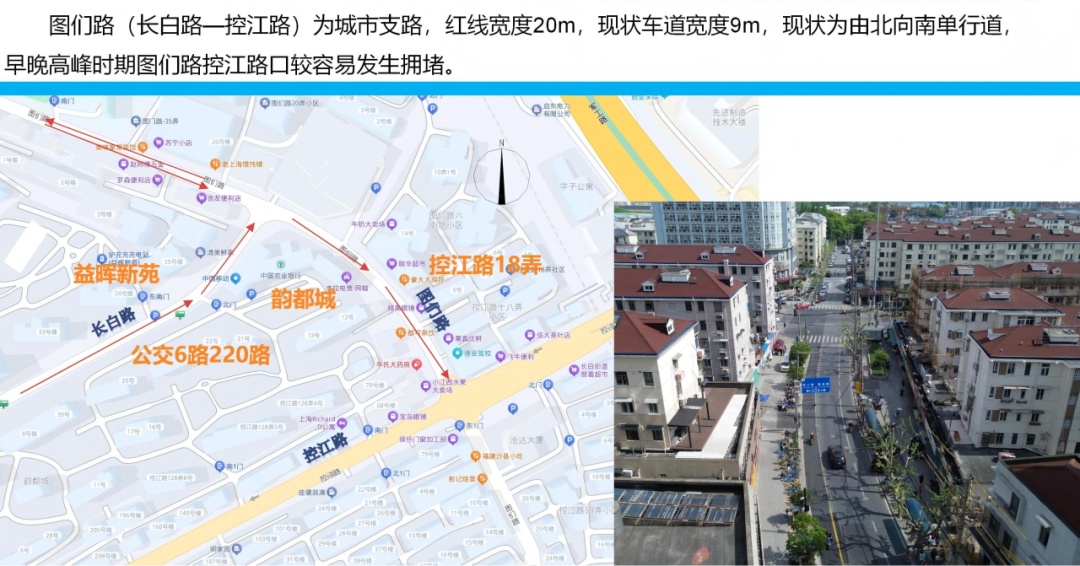 面对这块“硬骨头”,相关部门曾多次加大疏导力度,但由于物理条件的局限,始终没能断根。图们路(控江路—长白路)规划红线虽有20米,但两侧人行道受限于小区用地、绿化设施及各类管线杆件,大拆大建式的拓宽在短期内并不具备条件。如何在有限的空间里“抠”出通行的冗余度?这成了摆在决策者面前的一道难题。