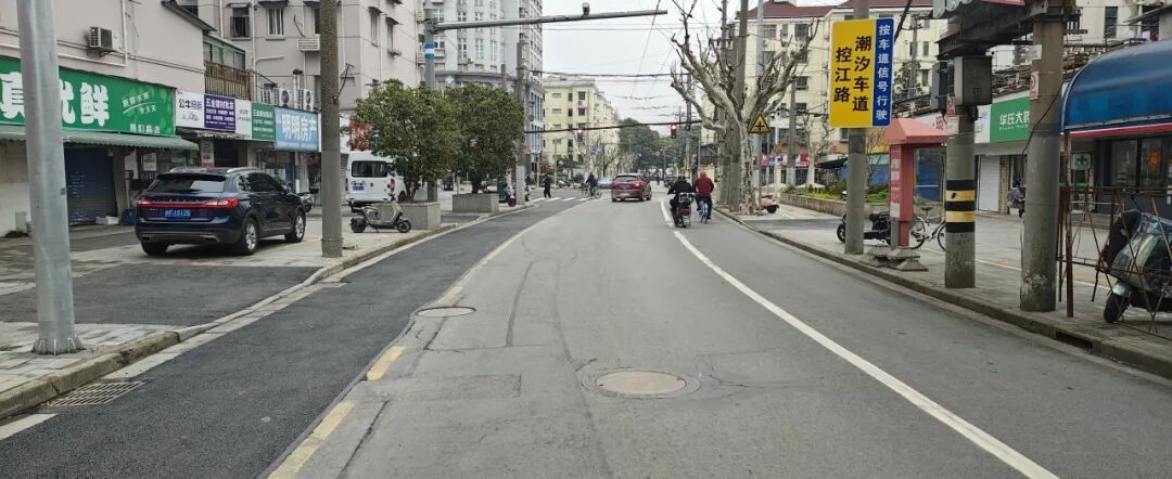 这一方案的巧妙之处在于,它在不触动小区红线、不新增建设用地的前提下,通过对路口绿化设施的合理置换,成功增设出一条右转专用车道。原本混行的“一锅粥”,被科学划分为“2.5米非机动车道+3.25米直行车道+3.25米右转车道”的精细化格局。