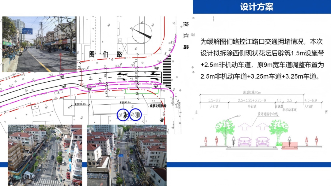 最终,一个“空间置换、功能重塑”的创新方案被敲定:利用道路红线外的土地,将西侧现状人行道调整为非机动车道,并将原有的9米车行道重新“排兵布阵”。