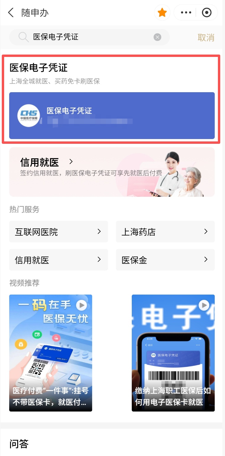 市民通过“随申办市民云”(APP/微信小程序/支付宝小程序),搜索“医保电子凭证”,根据页面提示,完成刷脸、信息确认等操作,即可激活个人“医保电子凭证”,刷码就医更方便。