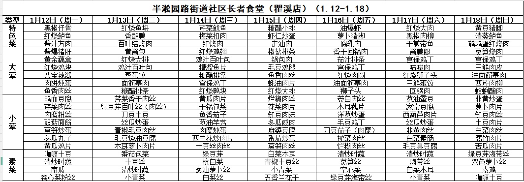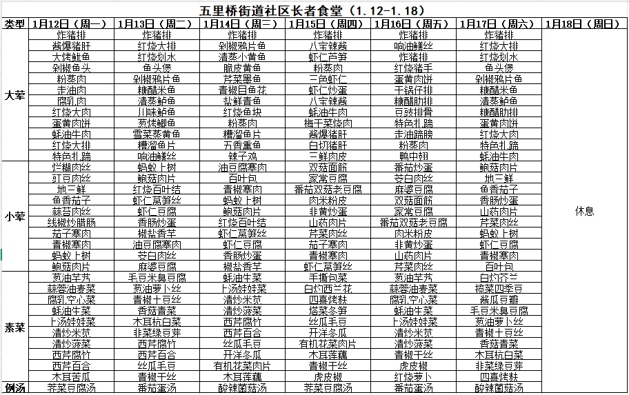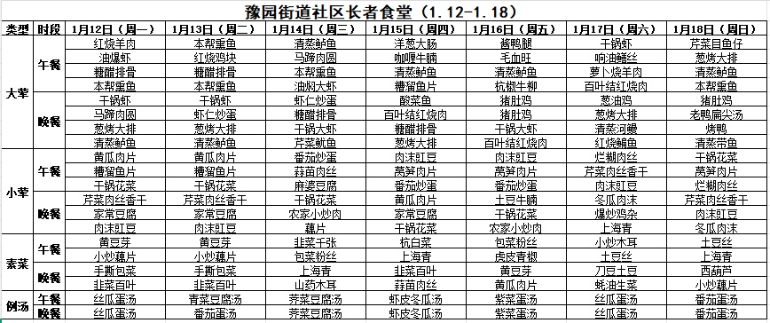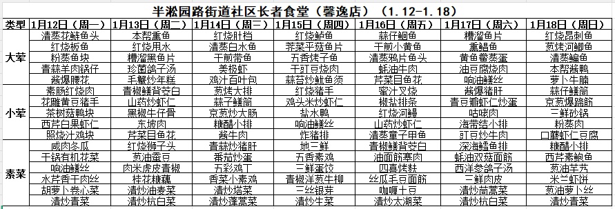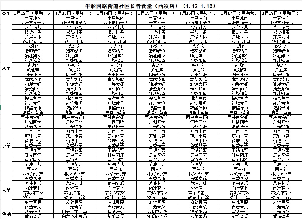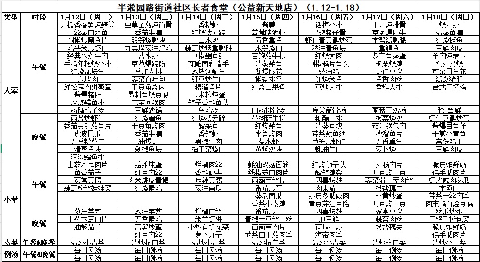 一周菜单来啦