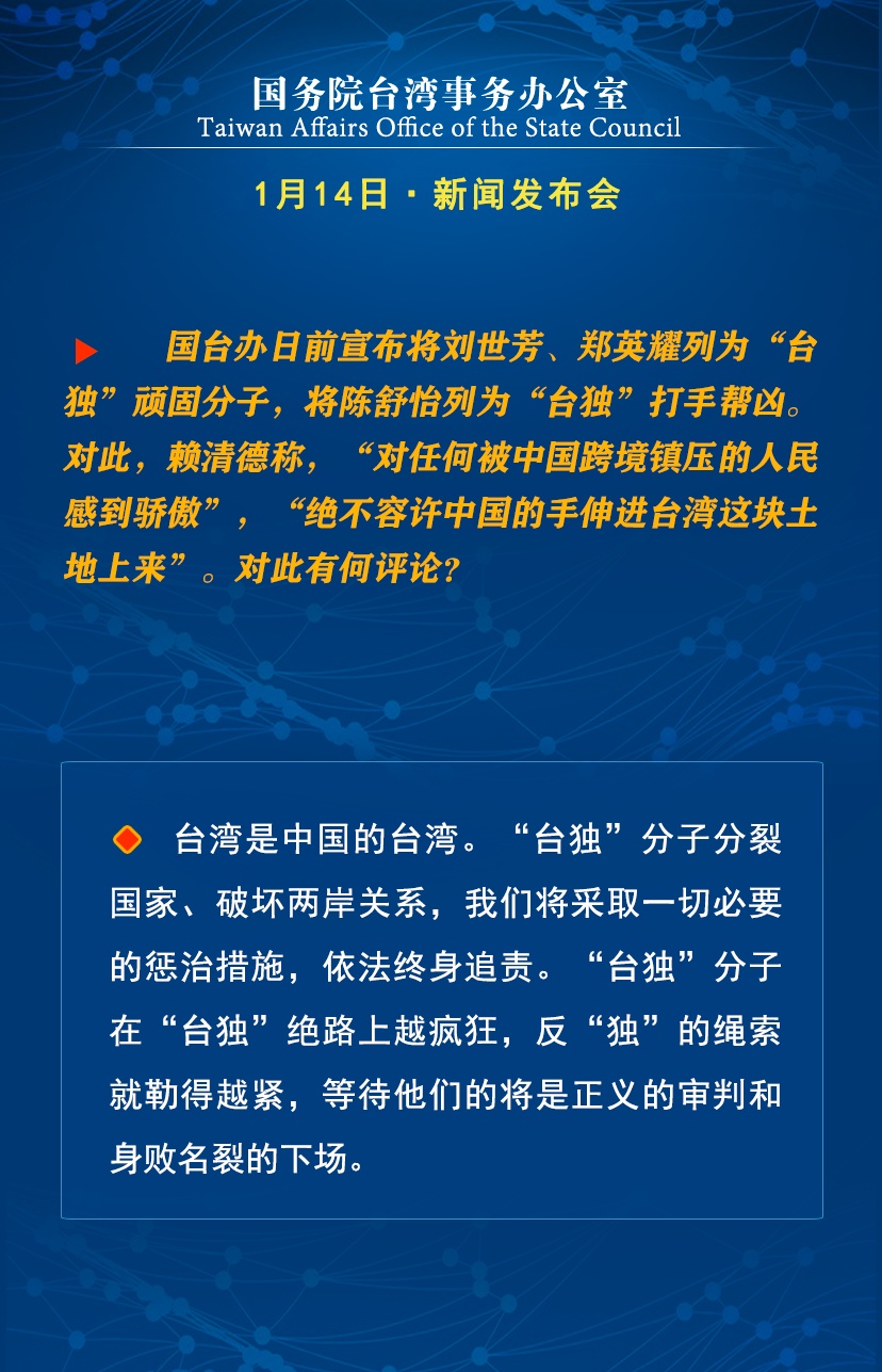 国台办:“台独”分子在“台独”绝路上越疯狂,反“独”的绳索就勒得越紧