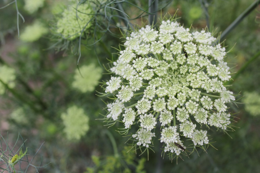 从身世上说,胡萝卜属于伞形科,和芹菜、香菜才是一家子。其实如果看到胡萝卜的地上部分,就能看到它羽毛般细碎的叶子,和萝卜宽大且边缘破碎的叶子截然不同。而在花期,胡萝卜会开出聚成精致的伞形花序的白色小花,更是和萝卜花相差十万八千里了。
