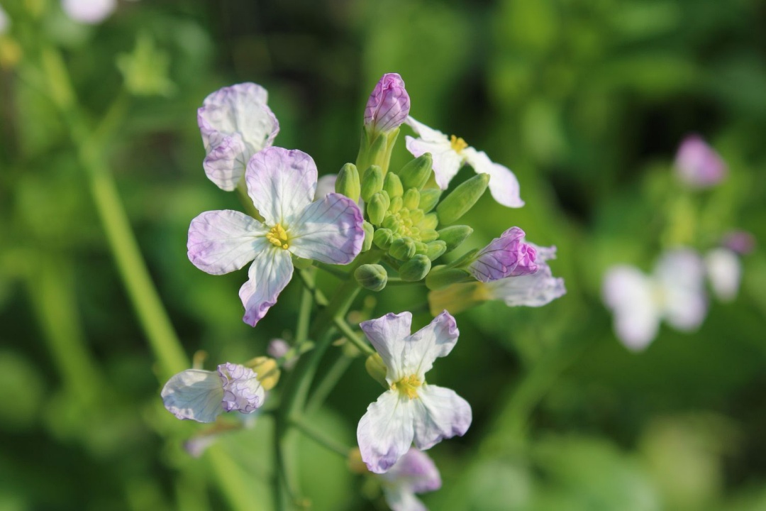 当然,表明萝卜十字花科植物身份的典型特征,当属它的花了。萝卜花有着十字花科植物典型的四枚花瓣、六枚雄蕊,不过相较于人们熟悉的油菜花,萝卜的花多呈白色或粉色,花瓣稍大且略有皱褶,虽然没有油菜那么热烈,但却更有一丝娇美的感觉。