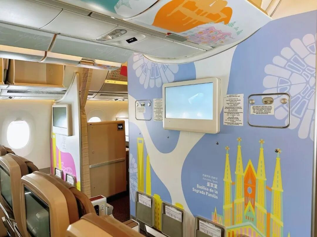 8月5日,东航MU6275航班从上海浦东飞往重庆,该航班是东航携手上海久事推出的“西班牙艺术季在云端”主题航班,将巴塞罗那的建筑美学搬进客舱,让旅客在云端轻松领略巴塞罗那的建筑艺术魅力。
