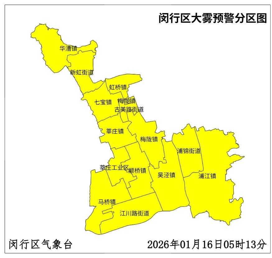 预计今天上午以前,本区部分街镇(莘庄工业区)将出现能见度小于500米的雾,局部地区能见度小于200米,请注意防范低能见度对道路交通的不利影响。