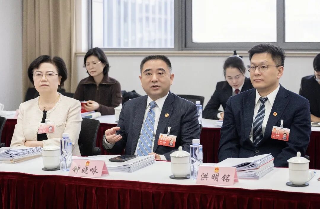 会场内气氛热烈,与会代表立足岗位实际,围绕政府工作报告及“十五五”规划纲要积极发言,钟晓咏认真倾听,与大家深入交流讨论。