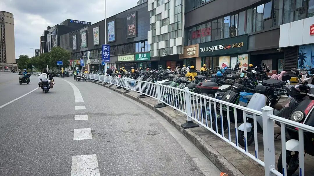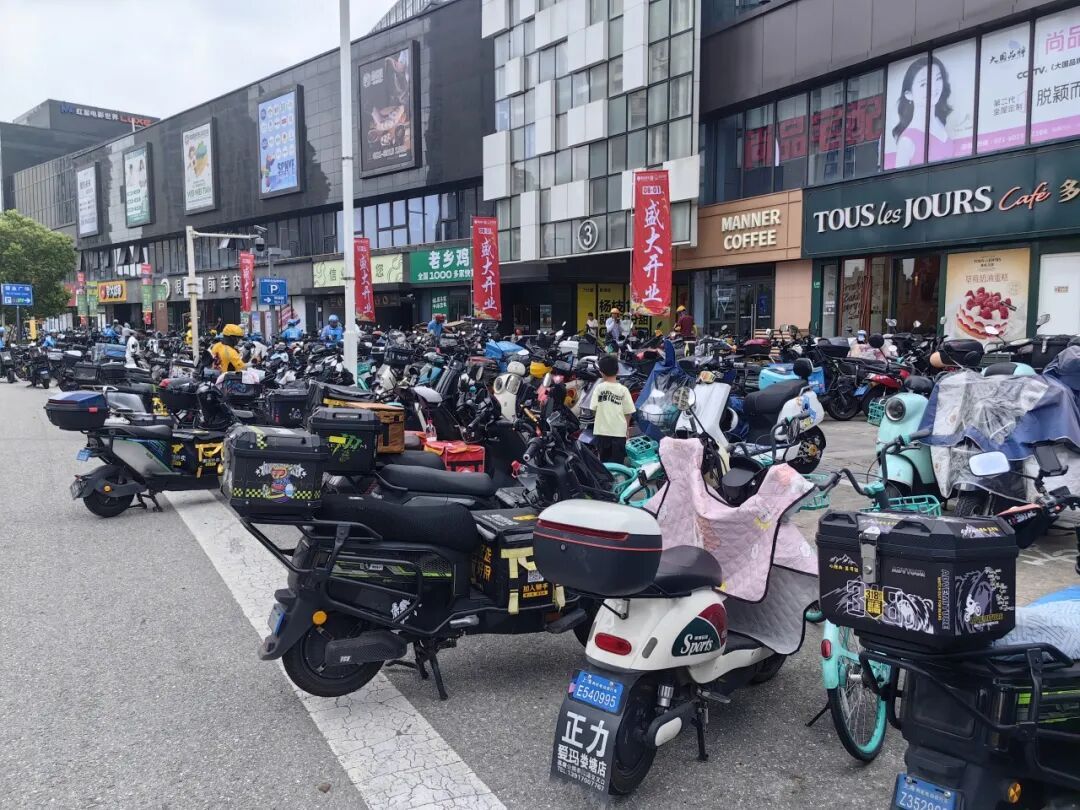 作为区域核心商圈,信业购物中心日均人流量大,外卖配送需求旺盛。此前,由于缺乏外卖非机动车停放区域,大量非机动车占用柳湖路非机动车道,不仅造成交通拥堵、增加安全风险,更影响商场车库通行,给周边居民出行和商户经营带来诸多困扰。