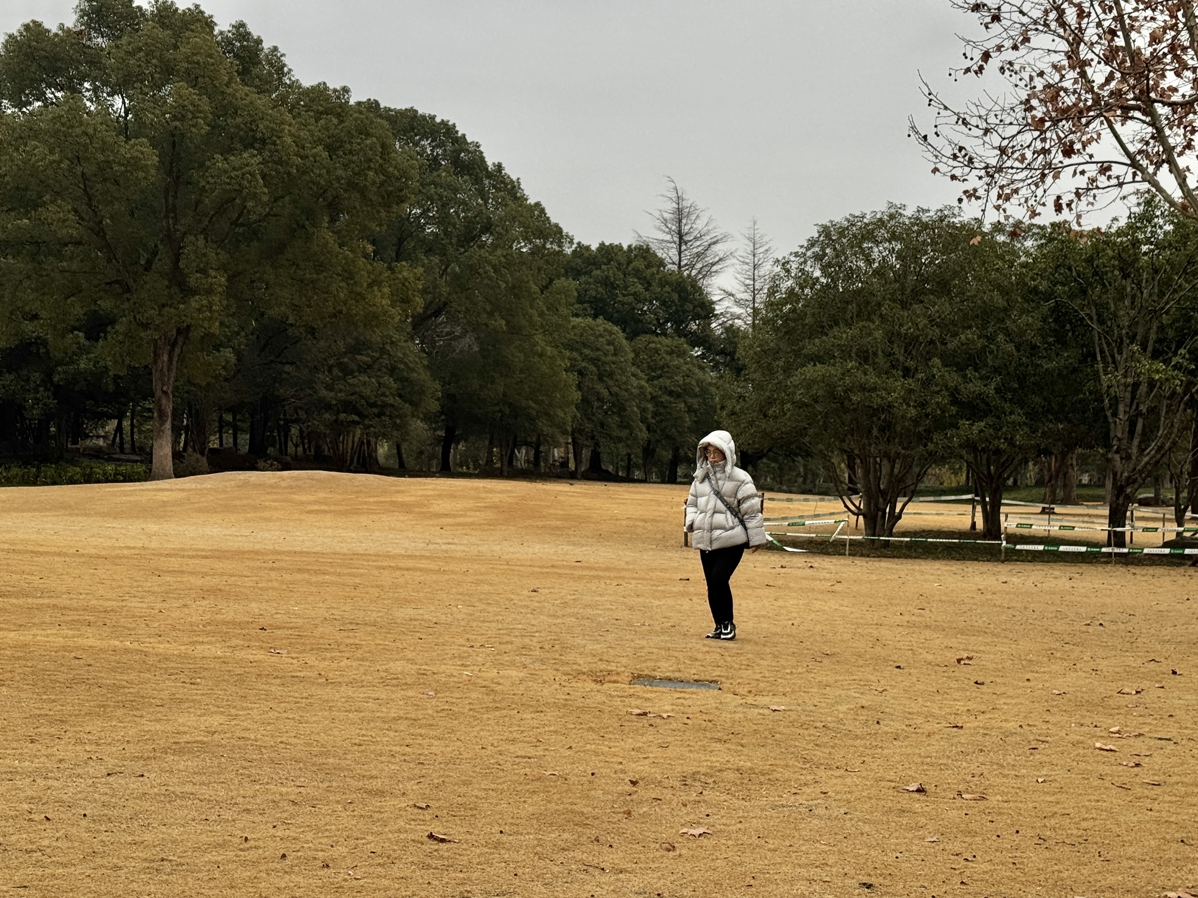 市民穿着厚外套在公园内散心