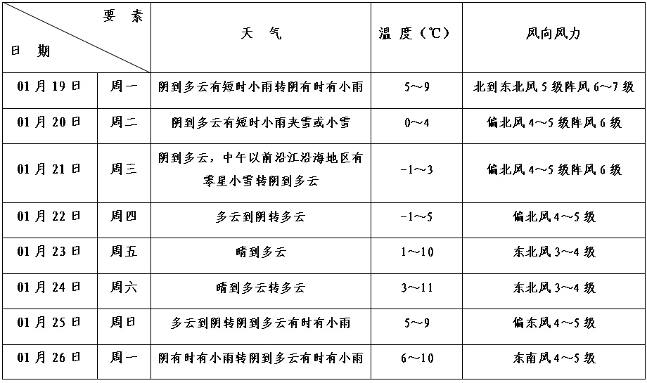 周三中午以前沿江沿海地区有零星小雪,夜里转为阴到多云。低温天气一直持续到周四,最高气温在3—5℃。其中周四雨雪止步,但早晨气温还要再刷新低!市区最低气温零下1℃左右,有薄冰,郊区零下6℃—零下3℃,有冰冻或严重冰冻,保暖丝毫不能松懈。周四白天风力明显减弱,周五开启晴好天气,气温小幅度攀升。