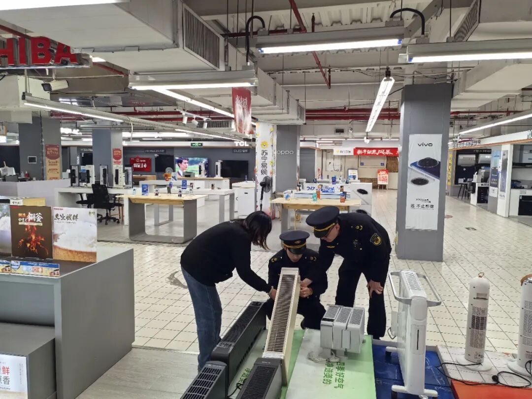 执法人员还向经营者和消费者普及安全知识,使用前应仔细阅读产品说明书,了解正确的使用方法和注意事项,严格按照说明书操作。取暖设备应远离窗帘、沙发、床单等易燃物,保持至少1米的安全距离,不要在取暖设备表面覆盖物品,防止热量积聚引发火灾。人走电断,长时间不用或外出时要拔掉插头,防止意外通电。