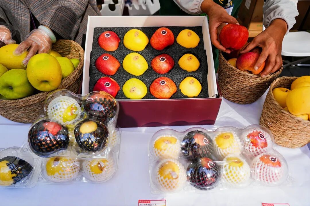 红彤彤的昭通苹果被摆在显眼位置,“一颗红苹果,甜出生活好滋味” 的推介词格外吸睛,不少市民边尝边点头:“这苹果味儿正,吃起来有果香!”